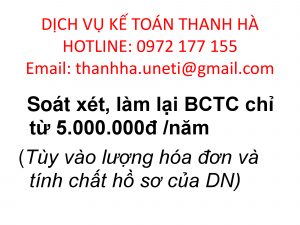 Dịch vụ kế toán Thanh Hà chuyên cung cấp gói dịch vụ soát xét báo cáo tài chính cho doanh nghiệp, nhằm hỗ trợ cho các doanh nghiệp vừa và nhỏ khắc phục, giải quyết các khó khăn, vướng mắc, hoàn thiện hệ thống kế toán, tiết kiệm chi phí, giảm thiểu rủi ro trong doanh nghiệp khi quyết toán thuế.